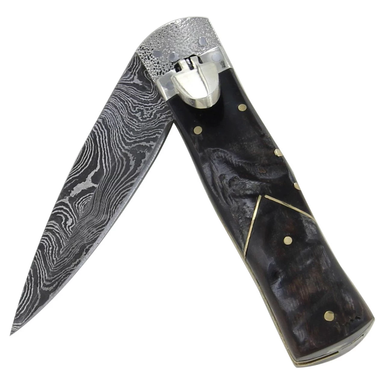Arrow Horn Stag Damascus Lever Switchblade Automatic Knife