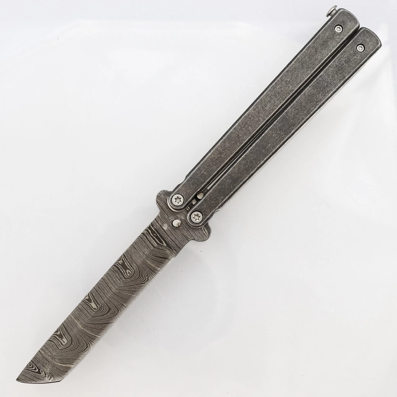 Butterfly Coal Miner Steel Knife | Tanto Point Damascus Blade