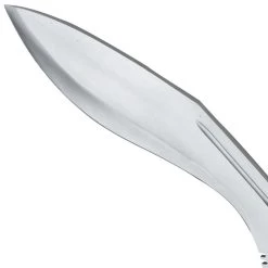 The Congolian Kukri Machete is constructed of carbon steel with a partial fuller. The handle is smooth stained hard wood contoured for a more comfortable firm hold. Included is an urban camo digital nylon sheath with a snap closure with belt.