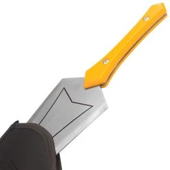 Now you can own the sword of one of the most powerful anime captains in history! This sword is wielded by the captain of the 11th Division of the Soul Society. This replica sword features a 26-inch mild carbon steel blade with a worn, jagged teeth-like design that resembles the sword in the anime. The white bandaged handle features a gold toned habaki, tsuba and kashira. This decorative piece also includes the matching bandaged scabbard. You wonโt regret adding this fantastic piece to your collection. Overall Length: 40.75 inches, Blade Length: 26 inches