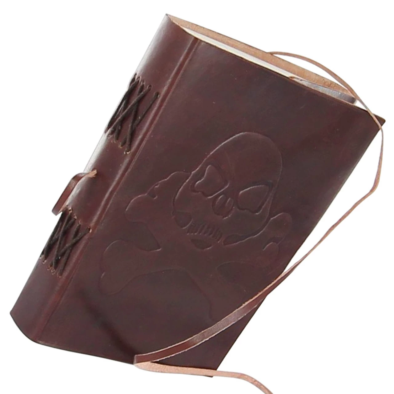 Jot down the account of all your adventures or keep count of your booty with the Handmade Jolly Roger Booty Log Journal. The paper used in this leather journal contains handmade ‘khadda paper’, made from recycled cotton also known as ‘kaddi’ or ‘khaddi’ that has been left over from the massive garment industry in India. The pages are held together with brown stained string which offers a unique X design on the spine. They are handmade and don’t contain any chemicals as we only use unbleached cotton. It has been handmade for a vintage authentic look. The outside is genuine brown leather an embossed Jolly Roger is featured on the front cover. Capture firsthand accounts of your legacy, hand drawn maps of islands you have ravished, and ships because after all you are a pirate. Keep your adventures tucked away safely with leather bound closure.