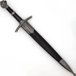 This sharp double sided steel dagger has an extra-large pommel with a rough finish for crushing skulls of small animals. The wooden stained handle is contoured for a comfortable grip and steel guard protects your hand from sliding over the blade as you strike your prey. Included is a digital woodland camo nylon sheath with a snap closure with belt loop. Overall Length: 13 Inches.