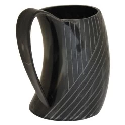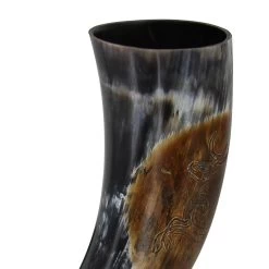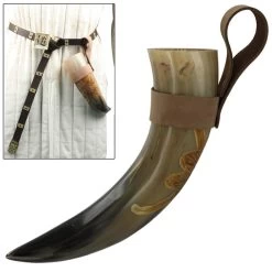 Brass Adorned Medieval Drinking Horn With Black Leather Holder