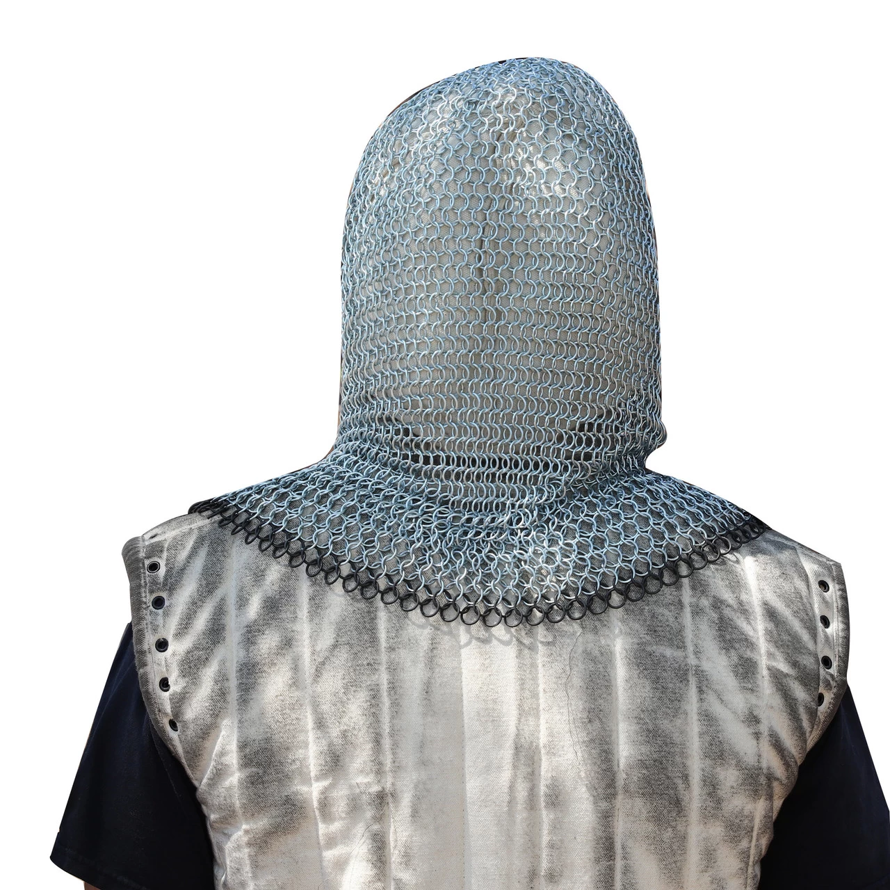 Medieval V Face Mild Steel Chainmail Coif Armor Blackened Steel Edges