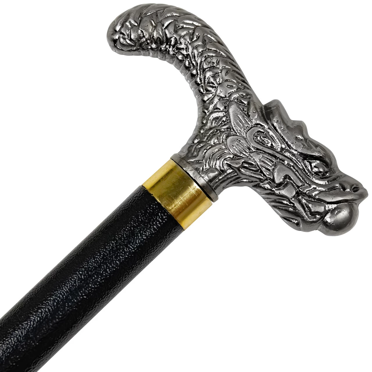 Pearl Courier Chinese Folklore Dragon Derby Style Handle Pewter Finish Costume Walking Sword Cane