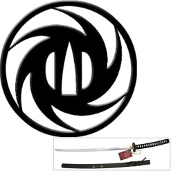 The signature curved hilt is constructed of an ABS material with a silver and black painted finish and protruding from both sides are double scythe stainless steel heat treated blades. Included is a wood plaque to proudly display your piece. Overall length is 27 inches.